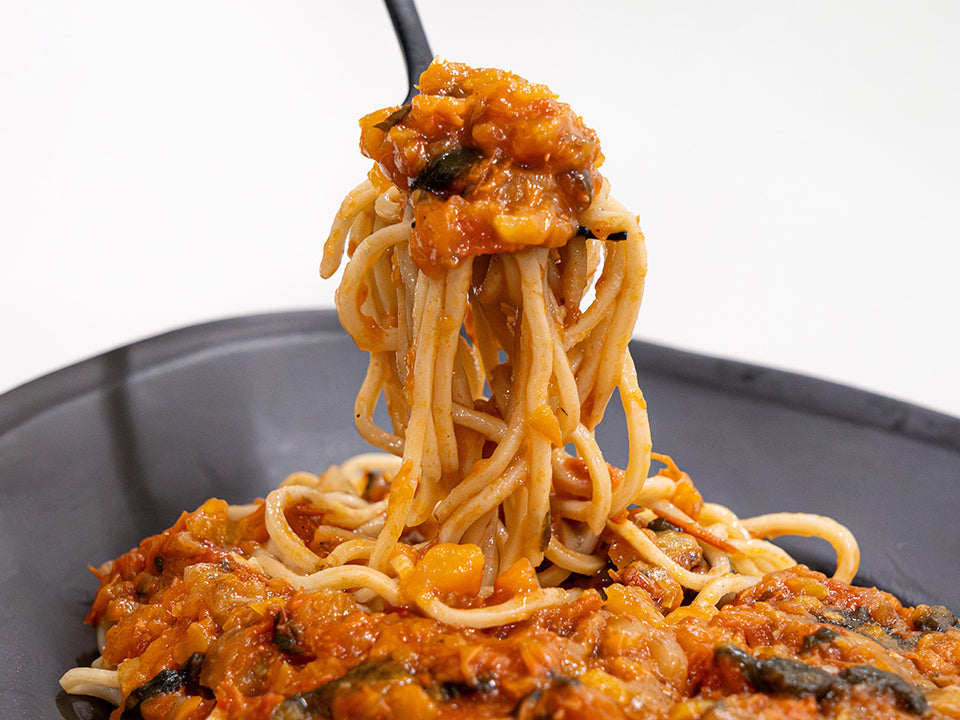 プレミアムトマトをベースに、にんにくやわかめを配合した本格トマトソース。お好みに合わせブロッコリーやズッキーニなど季節の野菜やベーコンなどを、茹でた麺とソースと一緒に炒めると一層美味しくいただけます。