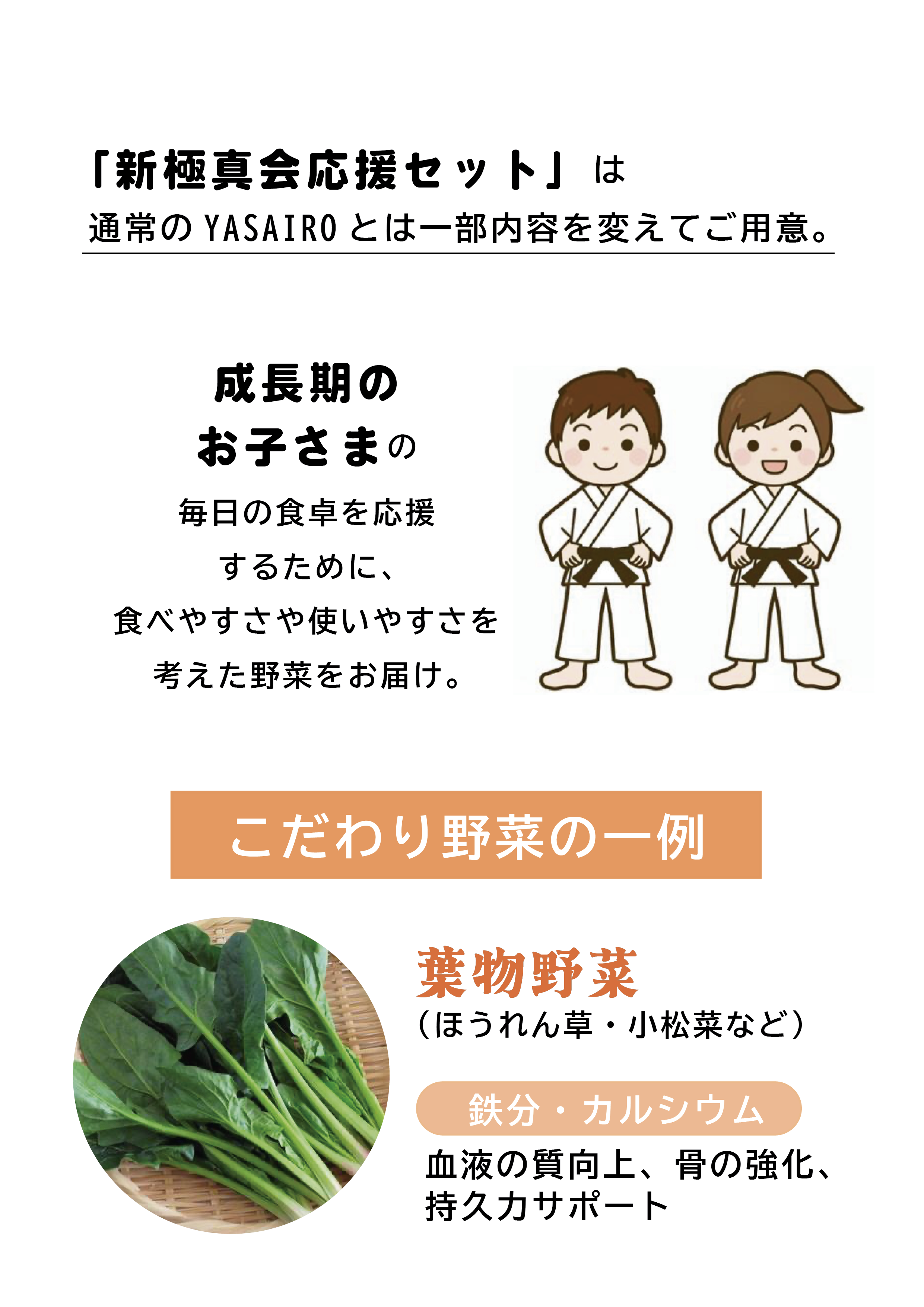 アレルギーやお好みにより特定の野菜の変更をご希望される場合は、お問い合わせフォーム から【ご注文者様のお名前】【ご注文番号】【変更をご希望の野菜と理由】を明記のうえ、事前にご連絡ください。